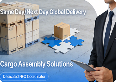 Same-day/next-day global delivery, cargo consolidation options, dedicated NFO coordinator.